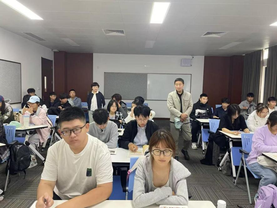 为保障新学期教学工作平稳有序,加强教学质量监控,营造优良学风,10月9日上午,国际交流学院党总支书记李亚梅、党总支副书记鞠永强以及学工办主任林媛媛组成督导小组,深入教学一线,对2025级新生“开学第一课”的教学运行情况进行了全面督导与检查。